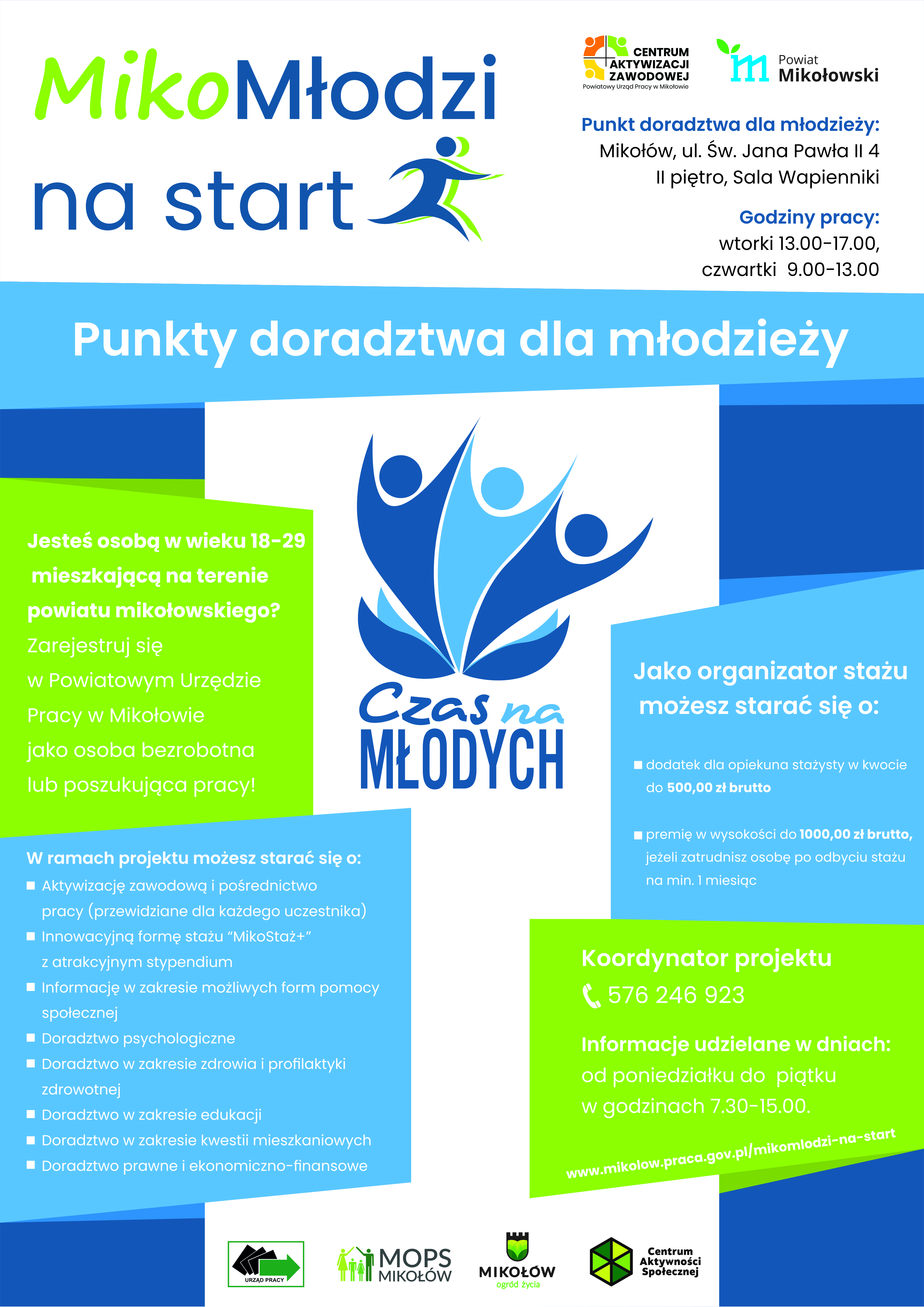 Jesteś osobą w wieku 18-29 lat? Serdecznie zapraszamy do odwiedzenia naszego Punktu doradztwa dla młodzieży w ramach realizacji projektu pilotażowego "MIKOMŁODZI NA START" Punkt znajduje się w Mikołowie na ul. Jana Pawła II 4 (na 2 piętrze) Aby wejść do środka budynku należy zadzwonić na domofonie pod numer 8. Jesteśmy dla Was w każdy wtorek od godziny 13:00 do 17:00 oraz w każdy czwartek od godziny 9:00 do 13:00 Szczegóły projektu: https://mikolow.praca.gov.pl/mikomlodzi-na-start