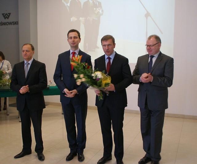 Nagrodę starosty, Kryształowe Jabłko Sądeckie, otrzymał gospodarz dzisiejszej uroczystości, producent bram Andrzej Wiśniowski. Nagrodę odebrał dyrektor eksportu w firmie Wiśniowski i zarazem radny powiatowy Wiesław Pióro.
