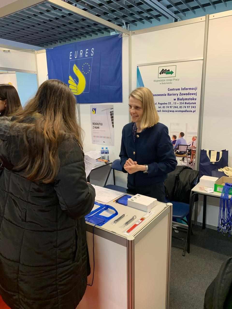 Stoisko informacyjne Centrum Informacji i Planowania Kariery Zawodowej w Białymstoku odwiedziły głównie osoby poszukujące pracy, potrzebujące wsparcia zawodowego oraz osoby zainteresowane warsztatami. Z konsultacji doradcy zawodowego, jak również informacji na temat możliwości, jakie daje EURES w poszukiwaniu pracy za granicą skorzystało kilkaset osób. Wśród interesantów najliczniejszą grupę stanowiły osoby bezrobotne, w tym osoby niepełnosprawne.
